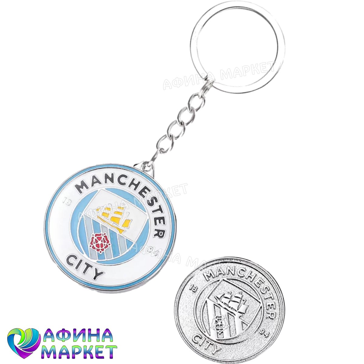 Футбольный брелок: Металлический логотип Манчестер Сити — Символ небесно-голубых!