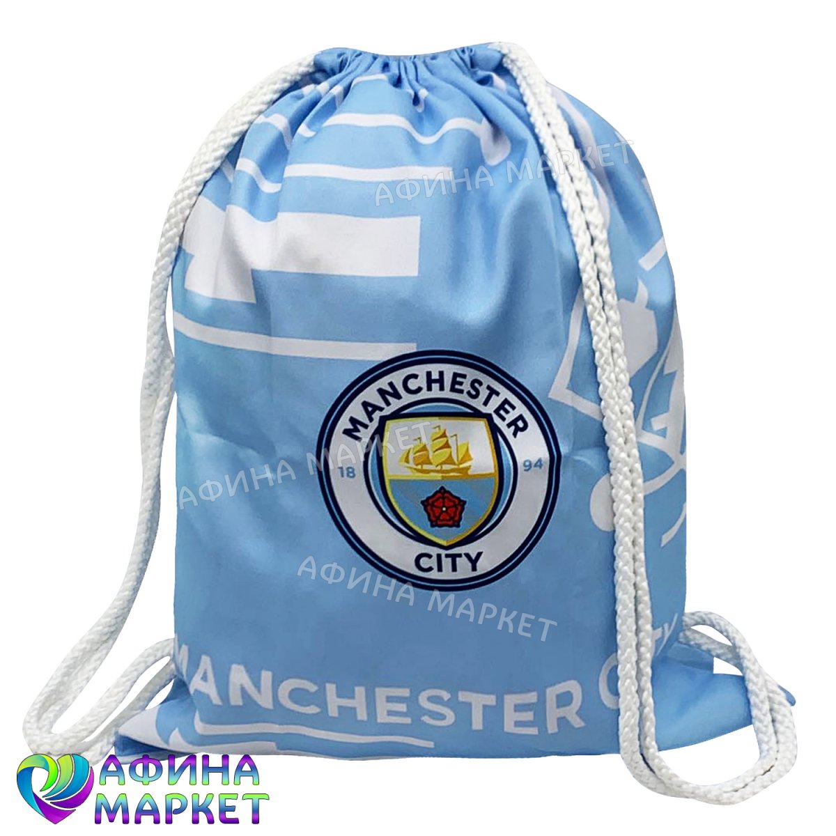 - Тип: Фирменный рюкзак-мешок с атрибутикой ФК Манчестер Сити.